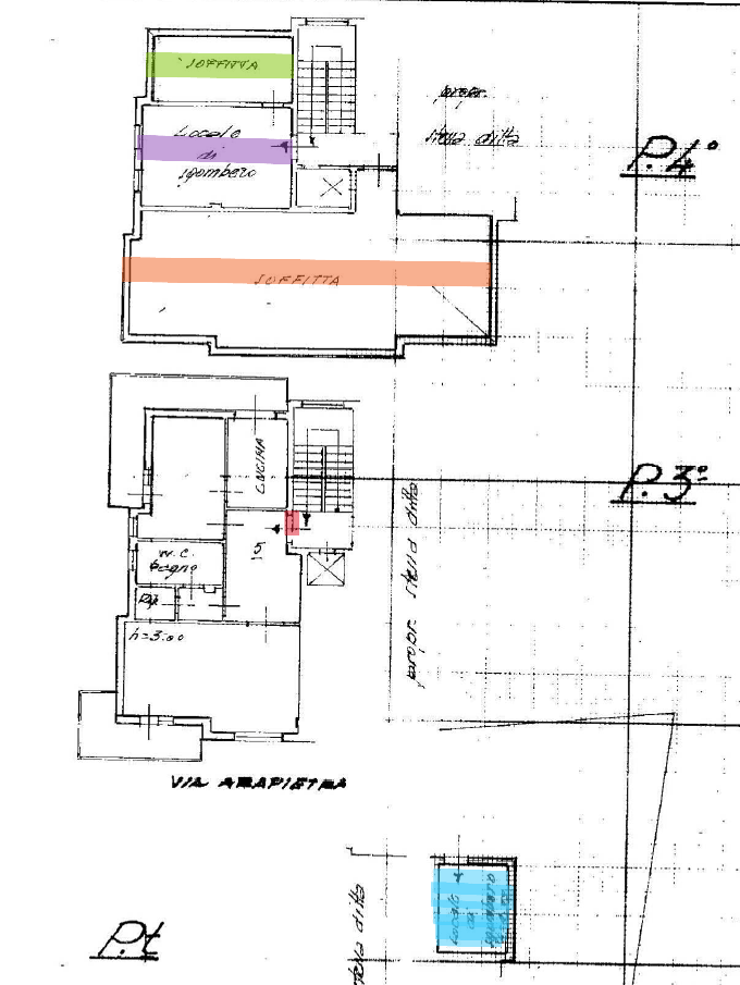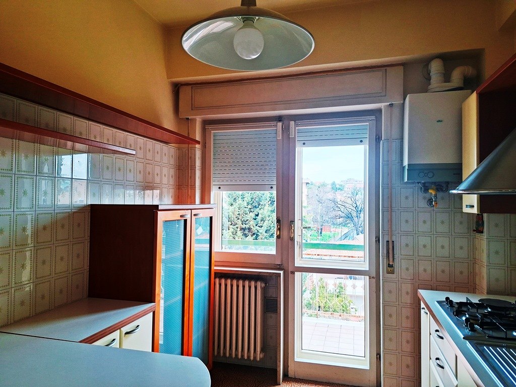 Appartamento ha ingresso spazioso, porta blindata Marsili, sala e cucina abitabile, un ripostiglio e un bagno molto grande, inoltre troviamo un doppio salone. L’immobile necessita di un intervento di restyling; con una ristrutturazione non invasiva, è possibile ricavare due camere e due bagni. L’appartamento ha due terrazzi e al quarto piano un grande locale di sgombro finestrato con camino e 2 enormi sottotetto/deposito. Mentre al piano terra troviamo un ampio stanzino ottimo per rimessaggio scooter o bici. Essendo stato rimosso il riscaldamento centralizzato nella ristrutturazione si deve valutare l’impianto di riscaldamento.