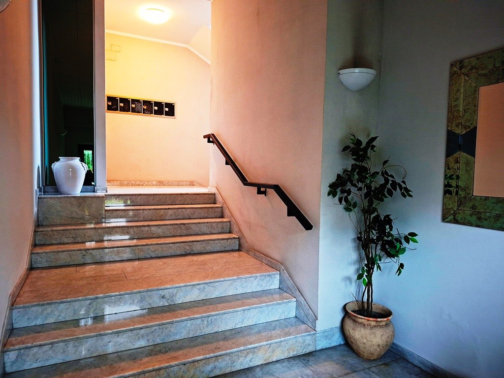 The first apartment has a spacious entrance hall, a Marsili security door, a living room and eat-in kitchen, a storage room, and a very large bathroom. There’s also a double living room. The property requires a renovation; with a minimal renovation, it’s possible to create two bedrooms and two bathrooms. The apartment has two terraces, and on the fourth floor, a large windowed utility room with a fireplace and a large attic/storage space. On the ground floor, there’s a large storage room ideal for scooter or bicycle storage. Since the central heating was removed during the renovation, the heating system needs to be evaluated.